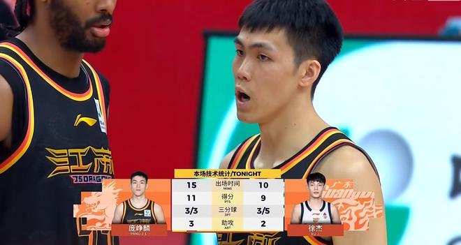 節(jié)中江蘇重新拿回龐崢麟,杜鋒也拿回崔永熙,換下沒什么用的杜潤(rùn)旺,前半節(jié)徐杰錯(cuò)失2記大空位三分,但好在還有薩林杰兜底,5分35秒胡明軒反擊挑傳薩老英雄再造2+1,廣東再度反超,關(guān)鍵時(shí)刻閆實(shí)回敬拋投幫助球隊(duì)止血,4分43秒,薩老英雄破包夾送出長(zhǎng)傳助攻胡明軒飚進(jìn)三分,一回合后龐崢麟再造三分犯規(guī)3罰1中,徐杰溜底線上反籃拿到個(gè)人第11分,廣東重新起勢(shì)。