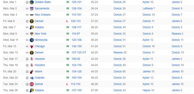 對陣步行者一戰,東契奇、詹姆斯、海斯、里夫斯四人都拿到20+的數據,東契奇更是斬獲43分7助攻6籃板4三分的狂暴數據,這支湖人隊的進攻能力非常恐怖,最近的11場比賽已經贏下了10場。